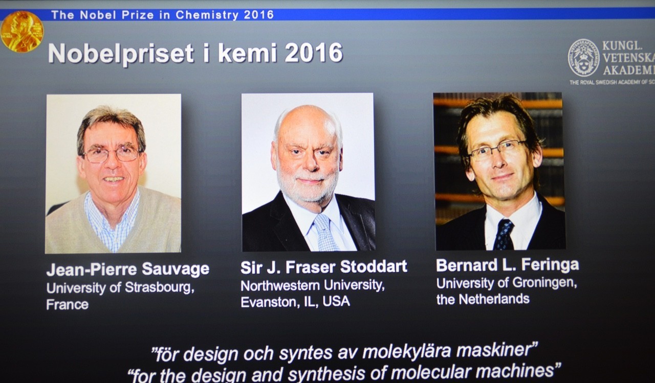 法国科学家让-皮埃尔·索维奇,英国科学家J·弗雷泽·斯托达特和荷兰科学家伯纳德·L·费林加三位科学家因“设计和合成分子机器”,获2016年诺贝尔化学奖。这些机器这被认为是“世界上最小的机器”,只有人类头发的千分之一大小,被用于设计医疗“微型机器人”。