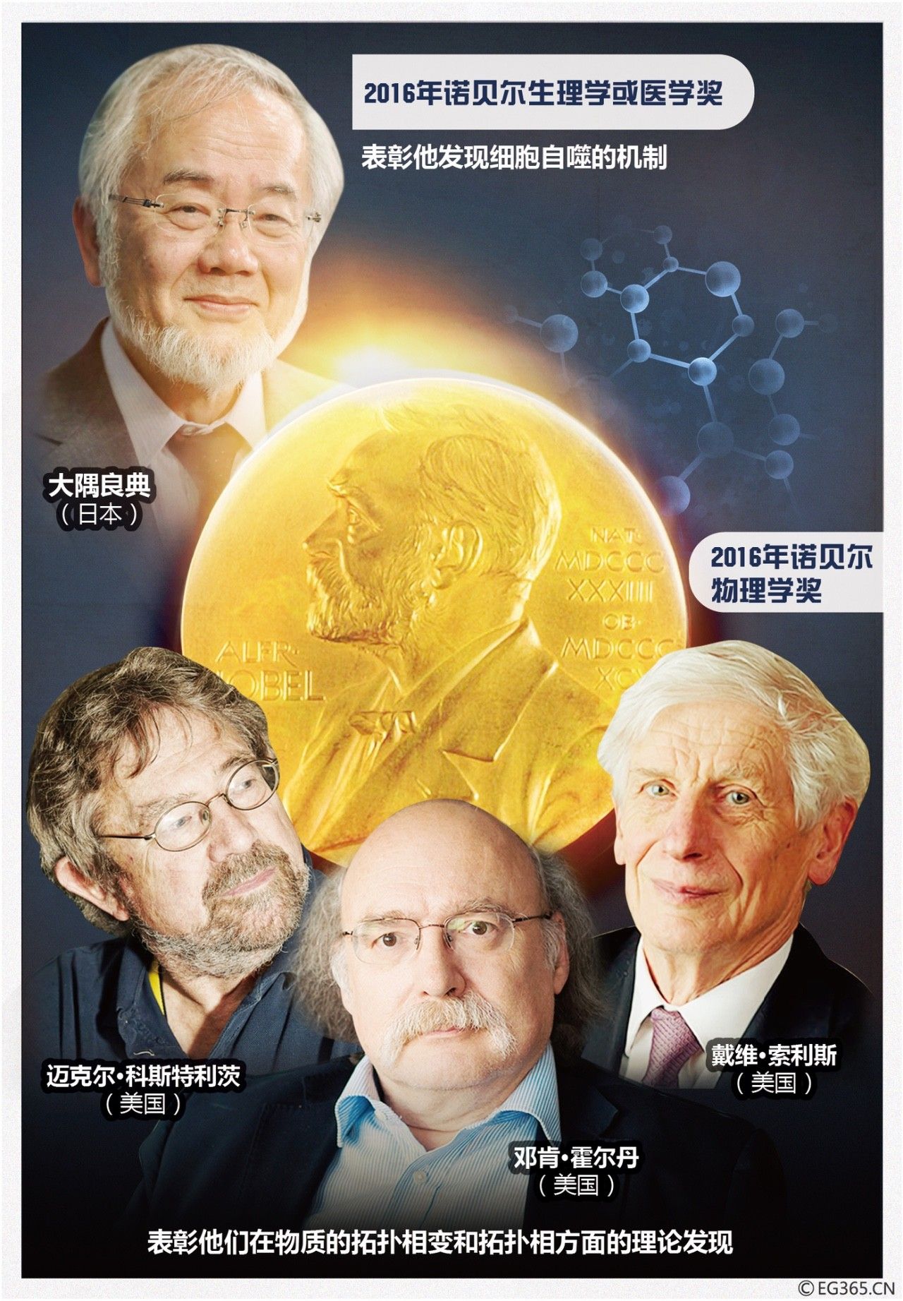 日本东京工业大学名誉教授大隅良典因在细胞自噬研究方面的成就,获2016年诺贝尔生理学或医学奖。