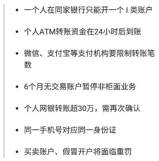 日前,央行发布新规,将从支付结算上入手,进一步提升支付结算安全性,整治电信网络违法犯罪。新规将于12月1日起实施。主要涉及以下内容: